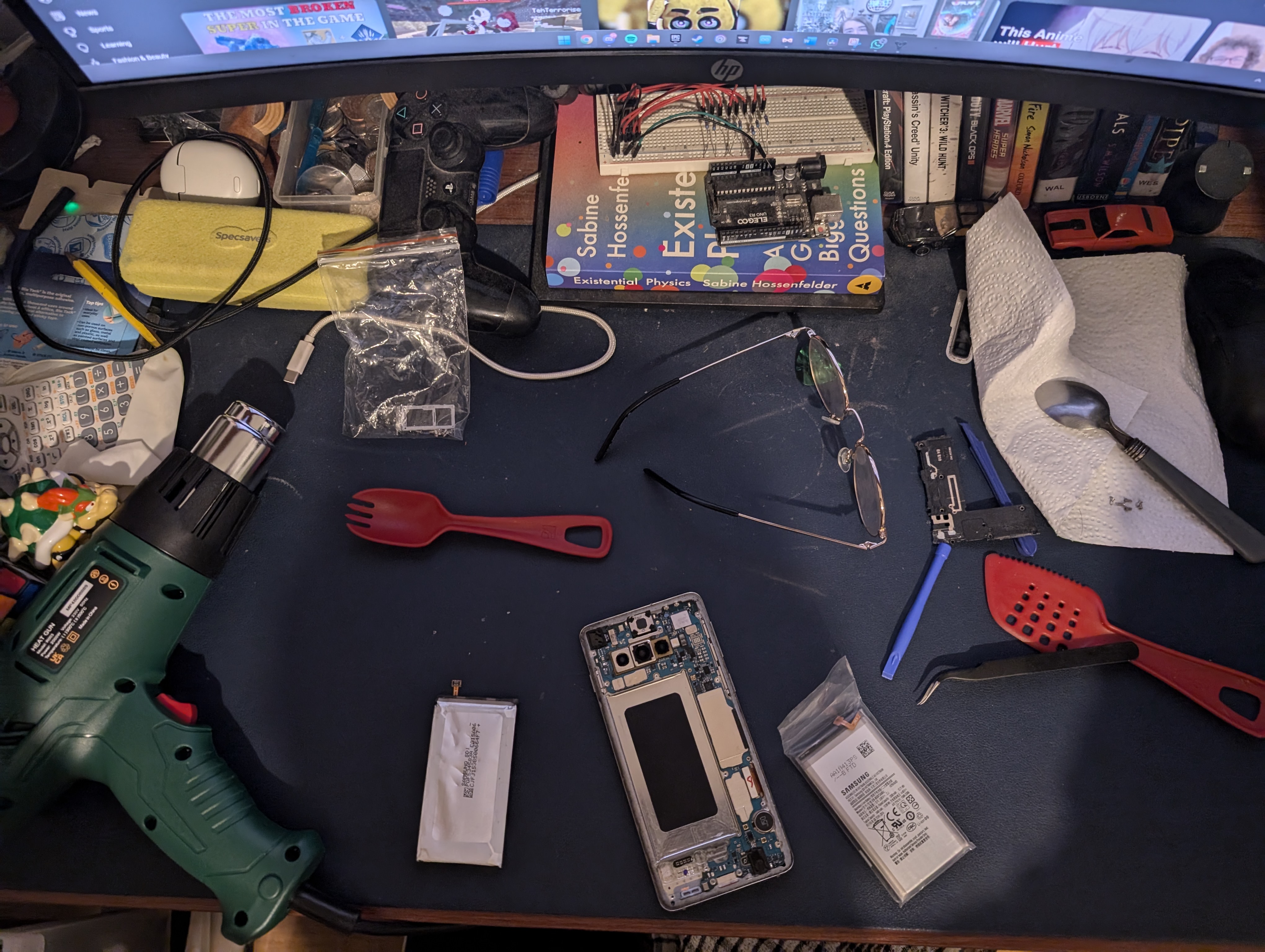I ordered a battery from eBay and a replacement back glass from AliExpress. The heat gun was ordered from Amazon.